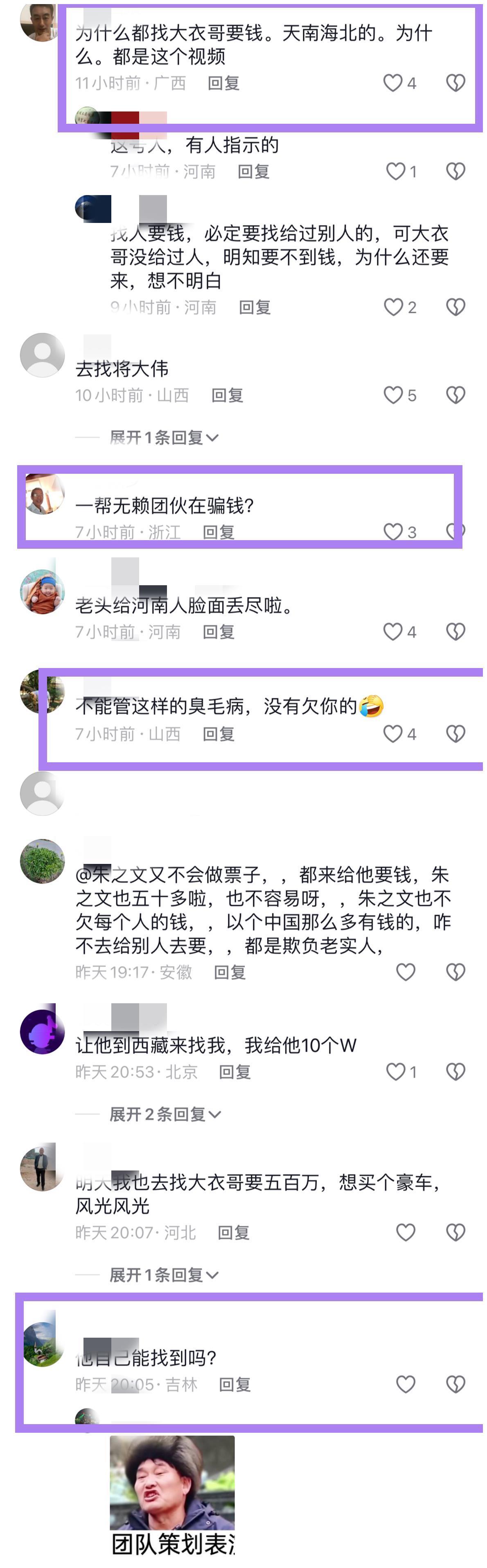 试想一下,一个如斯贫困的东谈主,怎样会安排得这样周密?细目是背后领有团队,这些团队看中了大衣哥的名气和“傻”,能骗一次是一次。