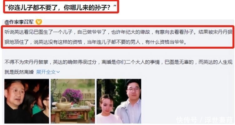 纯熟他们家庭纷争的东说念主一眼就能看出:宋丹丹此举是在明确划清领域,绝对将孙子与英达眷属割裂开来。